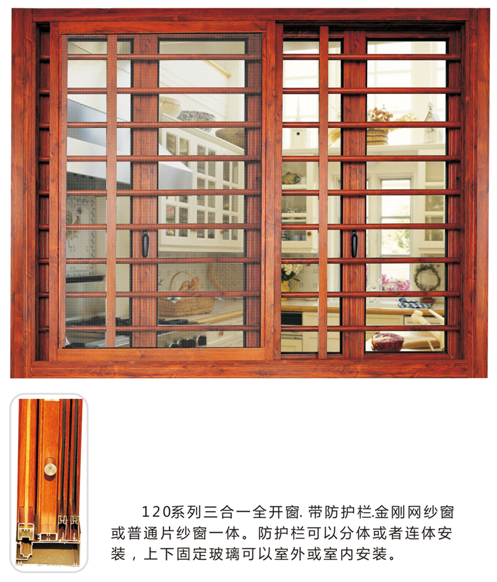 120系列防盜防蚊三合一全開窗1.2厚鋁型材